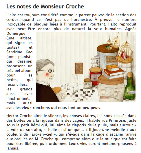 un bel article pour Les notes de Monsieur Croche (illustré par Sandrine Kao)